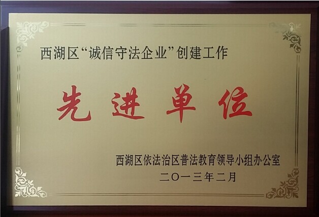西湖區(qū)誠信守法企業(yè)先進(jìn)單位